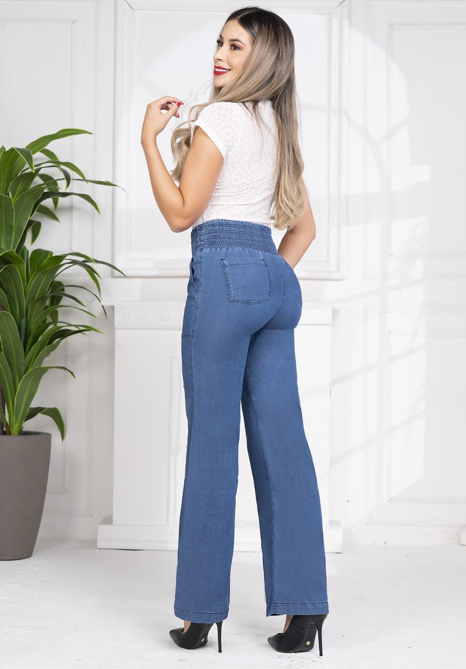 Jean Licrado Azul Medio Levanta Cola con Cinturón 3 Botones Control Abdomen Pitillo – Ref. 681 | By Groover
